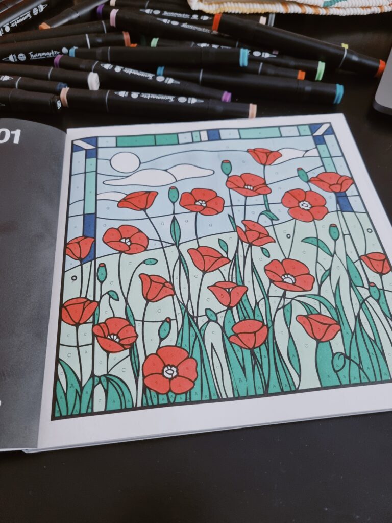 1. Het leuke van dat kleuren voor mij is ook dat ik dat met alcoholstiften doe en dat geeft een streeploos resultaat (haha) en dat is toch wel héél bevredigend.